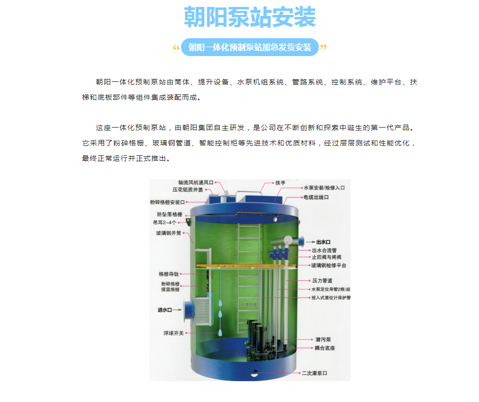 朝陽集團(tuán)應(yīng)工業(yè)園客戶的具體需求,按時(shí)按需完成并發(fā)貨。定制的一體化預(yù)制泵站,在設(shè)計(jì)上充分考慮了客戶的實(shí)際使用情況,經(jīng)過嚴(yán)格測(cè)試和檢驗(yàn),確保其性能穩(wěn)定可靠,壽命長(zhǎng)久。