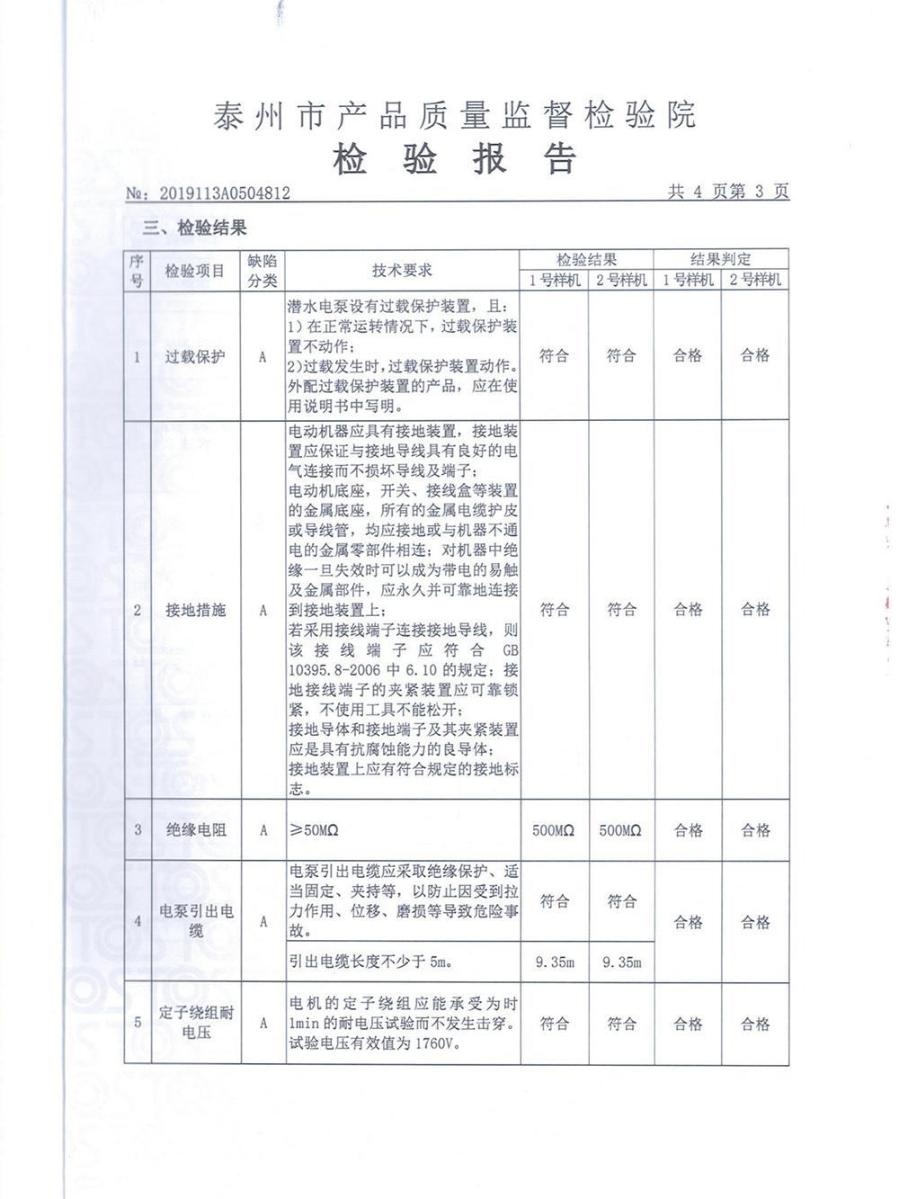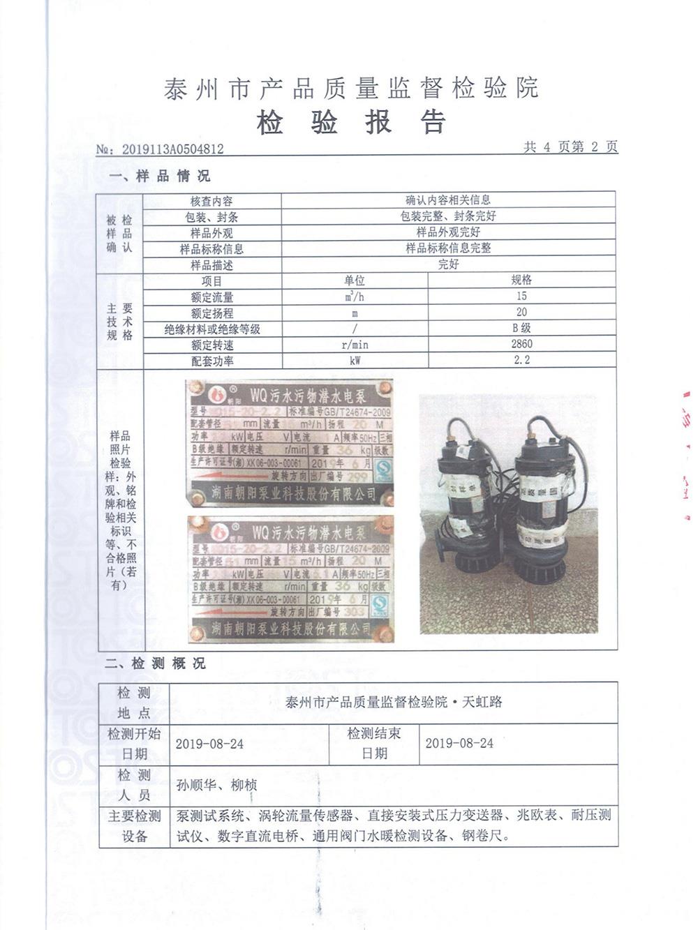 WQ污水污物潛水電泵檢測(cè)報(bào)告